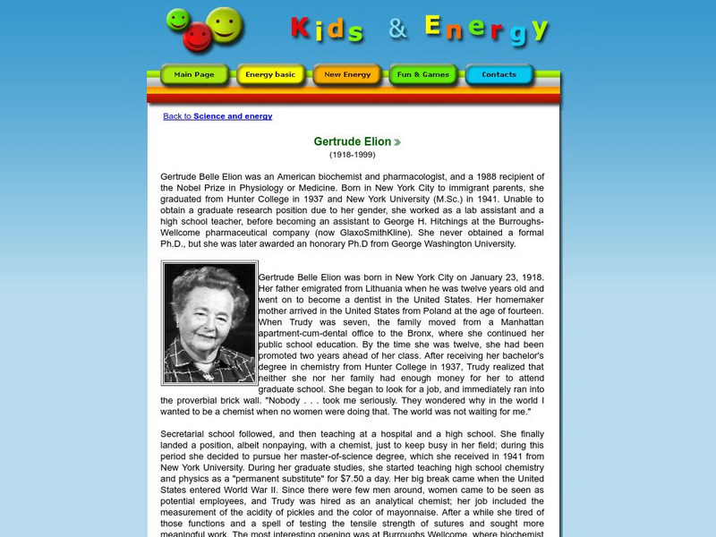 Esd Bulgaria: Kids & Energy: Energy Pioneers: Gertrude Elion (1918 1999)