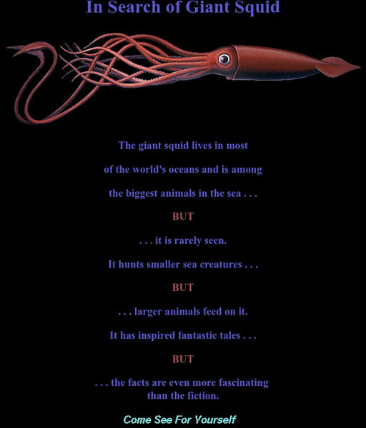 An on-line exhibit archived from a Smithsonian exhibit explores and interprets the facts and myths surrounding giant squids - the world's largest invertebrates.