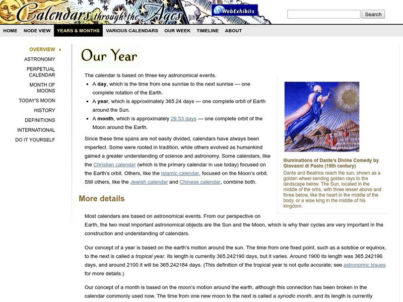 Well-organized website depicts the "Fascinating history of the human endeavor to organize our lives in accordance with the sun and stars." Gives an overview and specifics of the basis of calendars through the ages.