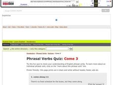 In this phrasal verbs worksheet, students check their understanding of phrasal verbs by choosing the best ending for each sentence.