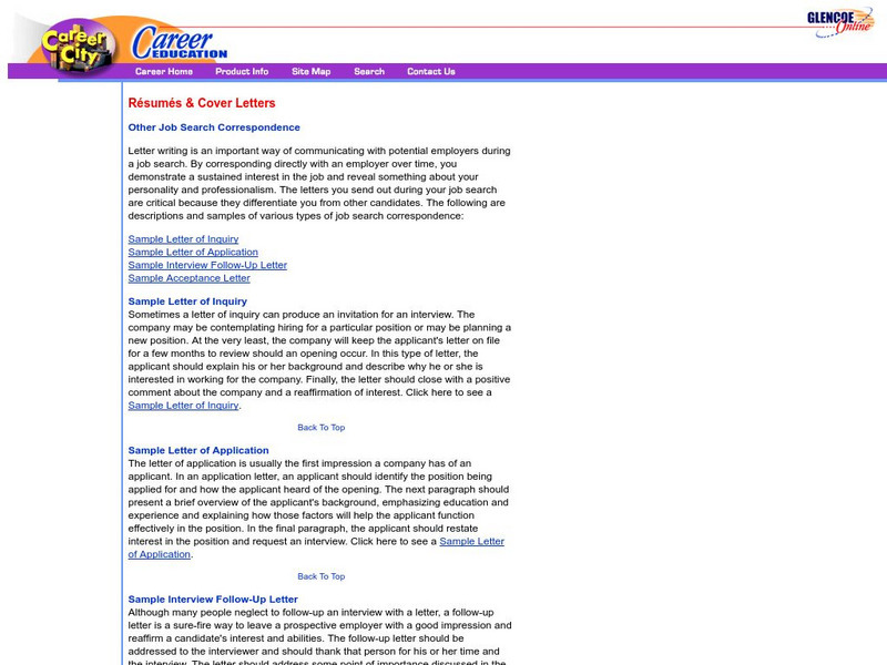 Glencoe: Job Search Correspondence