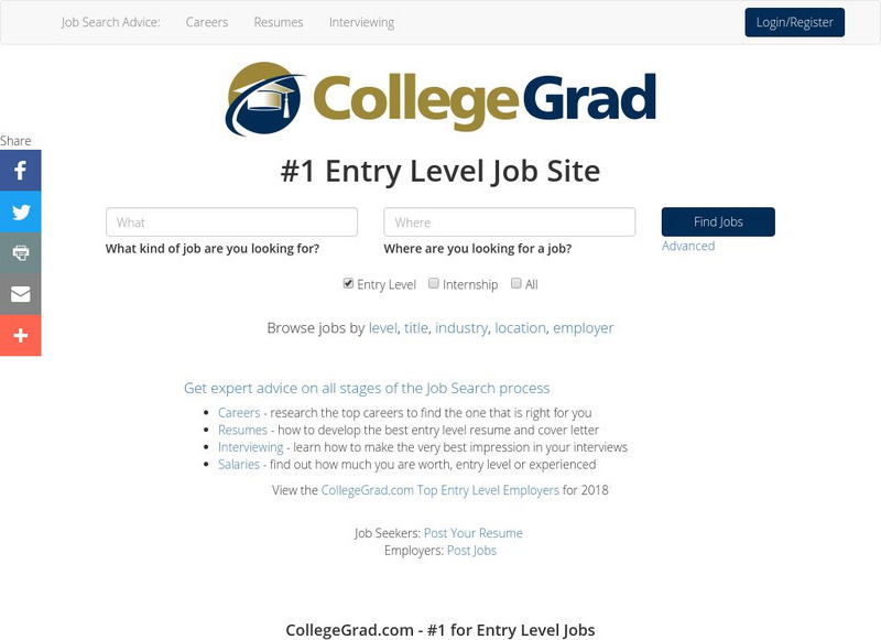 College Grad is a site developed for specifically for entry-level individuals looking for a job. There is a variety of job-realted information that assists you in getting the job you want!