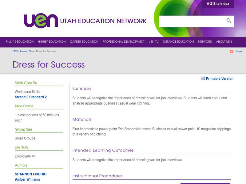 Students will learn about the different types of attire necessary in a business environment. Interview attire and business casual are included in the content of the lesson.