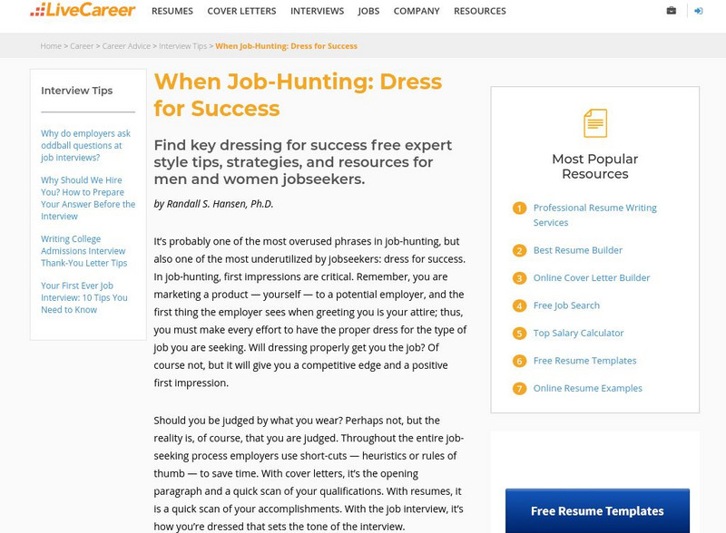 This site provides some hints for dressing for success for both men and women. Also includes some accompanying sample pictures.