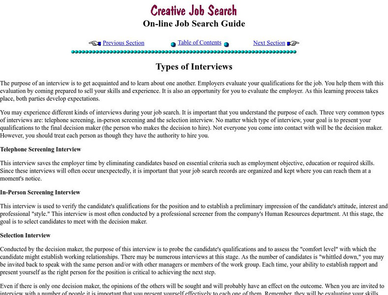 Career Resource Center contains career resources, newspapers, newsgroups, as well as other Internet career links.