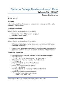 How do I get where I'm going from here? The fifth of six college and career readiness lessons invites seventh graders to dig deep into the career of their choice. Once they complete their research, individuals relate their findings to...