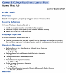 Can you name the job that involves scholars, classes, and grades? If you guessed teacher, you just won a round of Name That Job! The second instructional activity in a five-part college and career readiness unit has career seekers team...