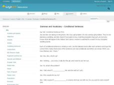 In this online interactive grammar skills worksheet, students answer 9 fill in the blank questions regarding conditional sentences. Students may submit their answers to be scored.