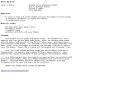 Students use tiles to find area. For this finding area lesson, students explore how to use square tiles to make shapes, then look at how they can be used to measure area. Students then explore how an area can be covered with different...