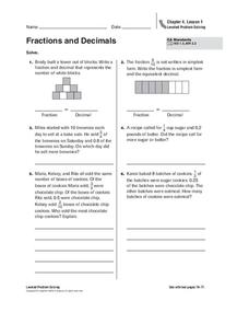 In this fractions and decimals practice worksheet, students sharpen their problem solving skills as they solve 6 story problems.
