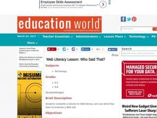 Students evaluate website content. They explore various websites, take an online quiz, and complete a "Quality Information Checklist."