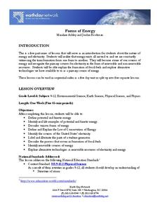 The amount of energy Americans use doubles every 20 years. The first lesson plan in a 10-part series teaches scholars about different forms of energy. They rotate through five stations with hands-on activities or experiments at each in...