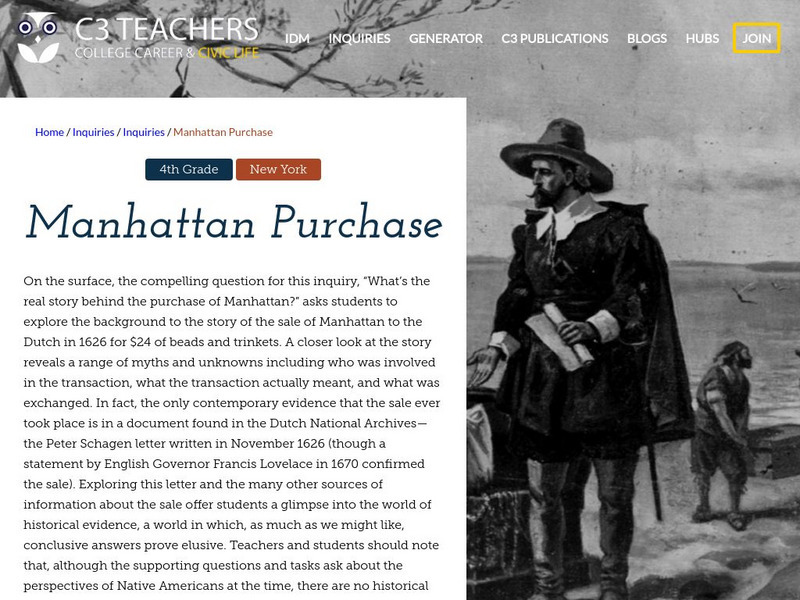 A comprehensive learning module on the purchase of Manhattan that includes three supporting questions accompanied by formative tasks and source materials, followed by a summative performance task. Students examine why the Dutch wanted...