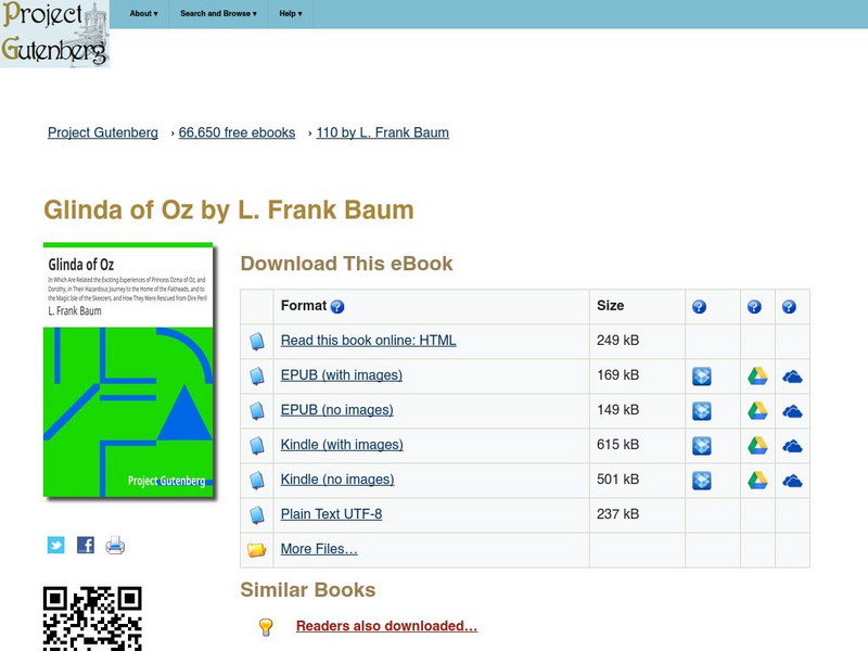 The full text of one of L. Frank Baum's sequels to The Wizard of Oz. This novel is about Glinda, the Good Witch of the West. Multiple digital formats of the full text are available.