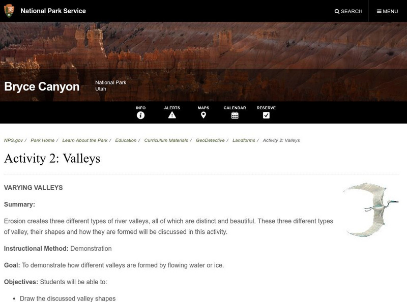 The NPS offers a good description of the three main types of valleys, lesson objectives, and modeling activities.