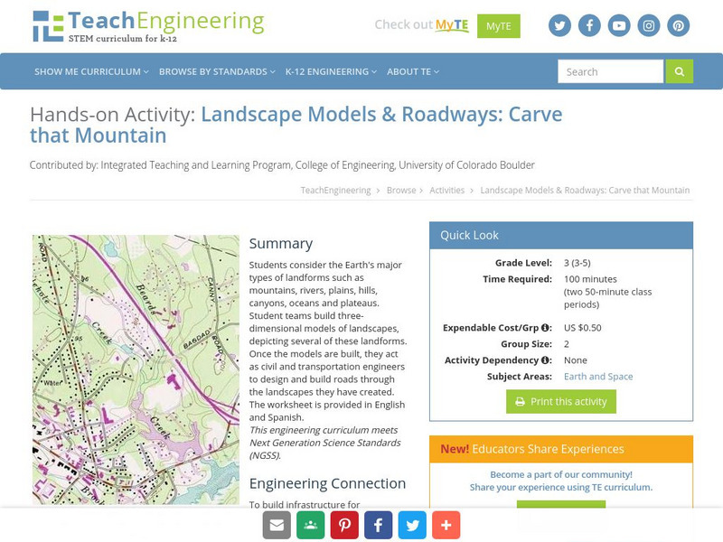 In this activity, students further investigate major landforms (e.g., mountains, rivers, plains, hills, oceans and plateaus). They build a three-dimensional model of a landscape depicting several of these landforms. Once they have built...