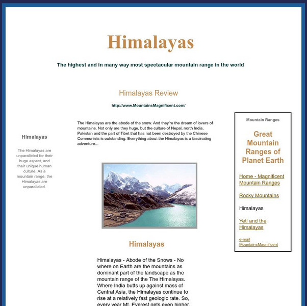 This site from Mountains Magnificent for learning about the culture, trails, and atmosphere of the Himalaya Mountains.