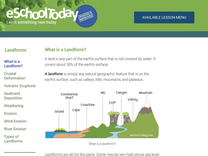 Student created reports on landforms. Each landform has a brief description and an example. Pictures accompany the reports. Learn more about the landforms that shape our world.