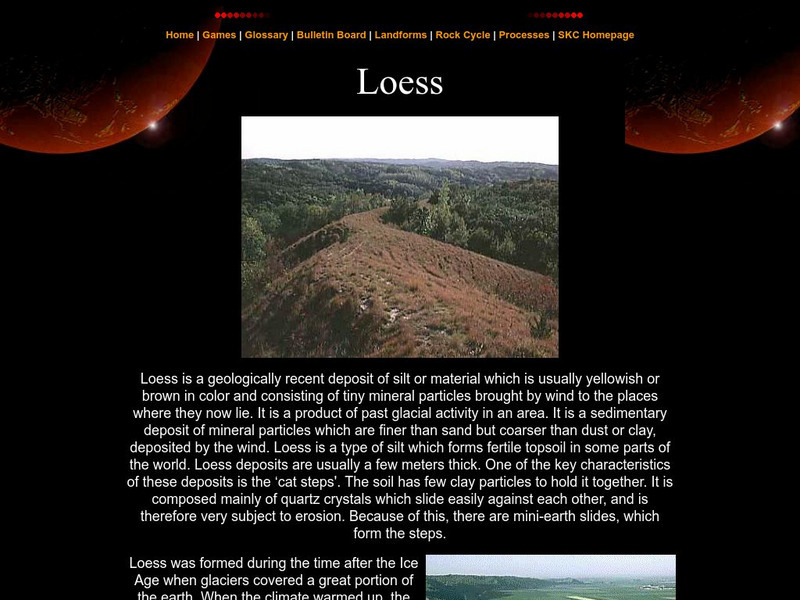 This site describes loess in pretty good detail, also adding visual with two pictures. Great source for understanding how loess occurs and where it is found.