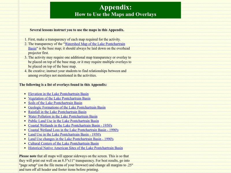 An entire unit regarding the wetlands of the Lake Pontchartrain Basin. Students can find comparisons or relationships between elevation, vegetation, soils, geologic formations, rainfall, pollution, public land use, coastal wetlands,...
