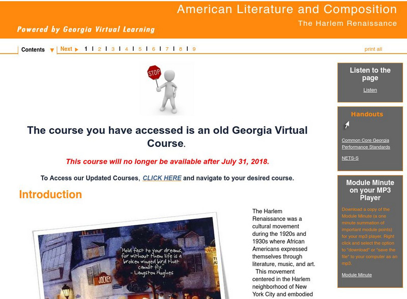 Ga Virtual Learning: American Literature and Composition: The Harlem Renaissance