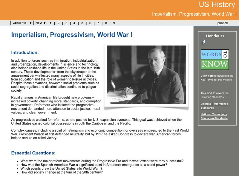 U.S. History learning module on late 19th early 20th Century Imperialism, Progressivism, World War I.