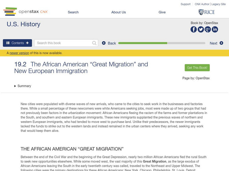 Open Stax: Urbanization 1870 1900: Great Migration and New European Immigration