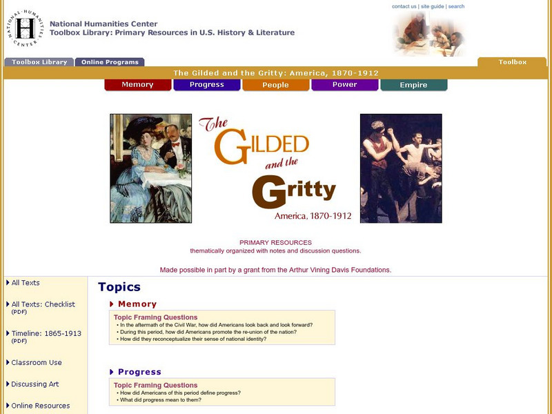 National Humanities Center: Toolbox Library: Progress, the Gilded and the Gritty: America, 1870 1912