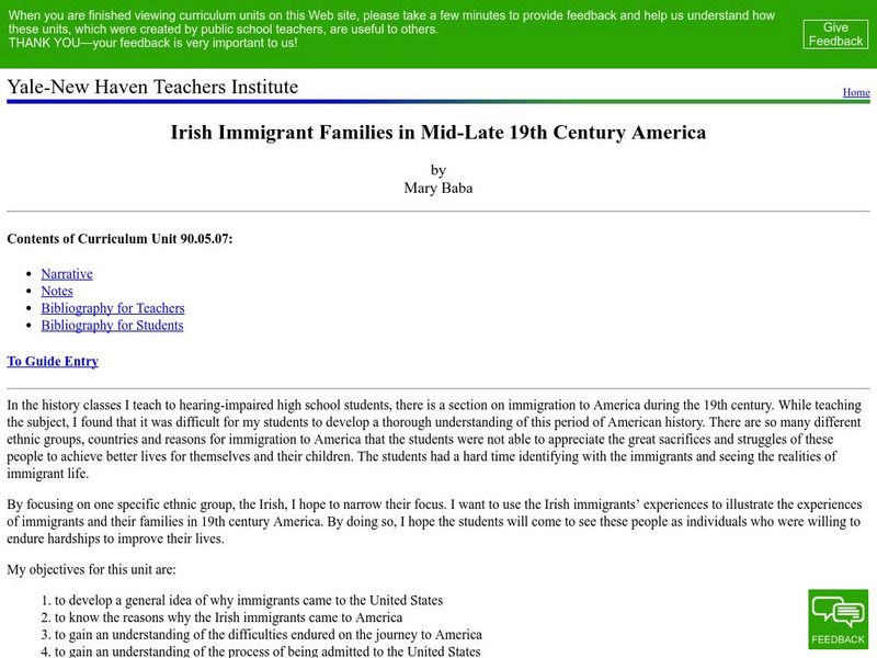 Yale New Haven Teachers Institute: Irish Immigrants in 19th Century America