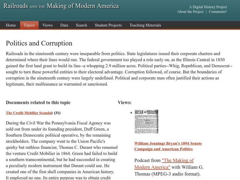 Corruptions, malfeasance, bribery and fraud - all these terms can describe the construction process of the American railroad system. Search primary source documents to uncover the shenanigans that took place in the late 19th century....