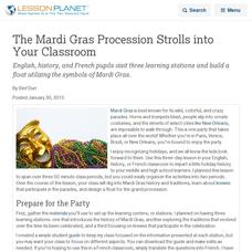 English, history, and French pupils visit three learning stations and build a float utilizing the symbols of Mardi Gras.