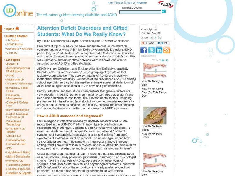 This website provides a description of Attention Deficit Hyperactivity Disorder and compares the prevalence of ADHD in students who are identified as gifted, or vice versa. Also included is a discussion on the current research findings...