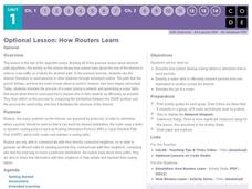 First graders examine and discuss the skills needed to be an effective learner. They sing "The Learning Song" to the tune of London Bridge is Falling Down, and complete a Learning Book activity sheet. Each student draws a picture of the...
