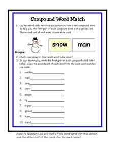 For this vocabulary worksheet, students generate compound words by matching word cards. Students answer 10 compound word questions. The word cards are not included.