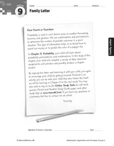 In this probability and statistics instructional activity, students work with a family member to determine the number of outcomes in a given situation. The two page instructional activity contains four...