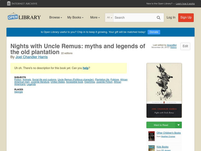 Open Library: Nights With Uncle Remus: Myths and Legends of the Old Plantation