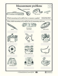 Would you use a ruler to measure the length of a soccer field? No way! Pupils explore four tools of the trade: yardstick, measuring wheel, tape measure, and ruler. They label 12 measuring tasks with the most appropriate...