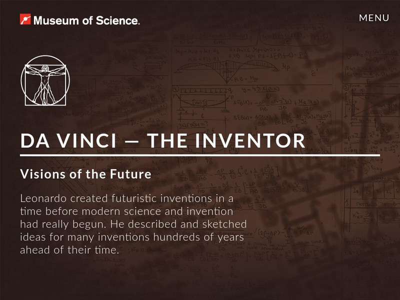 This site from The Museum of Science includes modern machines that Leonardo da Vinci first designed. Original sketches of Leonardo's machines also included.