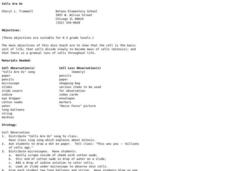 Students explore cells. In this science lesson plan, students investigate how the cell is the basic unit of life, that cells divide slowly to become mass of cells, and that there is a gradual loss of cells throughout life.
