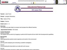 Young scientists take a close looks a samples of sand that come from three different beaches. They use microscopes to view the three slides, and make observations on a worksheet. At the end of the lesson, learners share their...