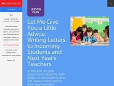 Students use proper writing conventions to write two friendly letters. They use the steps of the writing process to draft, revise, and peer edit. Students publish their letters. They write the first letter to a person who is going to...