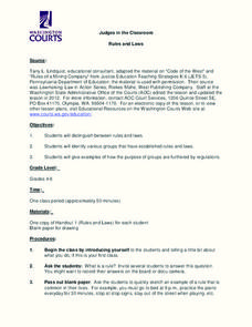 Students investigate the difference between rules and laws. In this justice system activity, students discuss the presence of rules of their lives and compare them the "Code of the West."