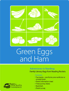 A reading of Green Eggs and Ham by Dr. Seuss and a nonfiction book of your choice begins a reading adventure pack comprised of three hands-on activities. Following the reading, scholars craft a food mobile made of colorful fruit and...