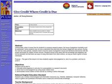 Middle schoolers explain what plagiarism is, why it is a problem, and how to avoid it. They articulate why it is unacceptable in a research document, and they show how to avoid it by using proper citation tools. They demonstrate correct...