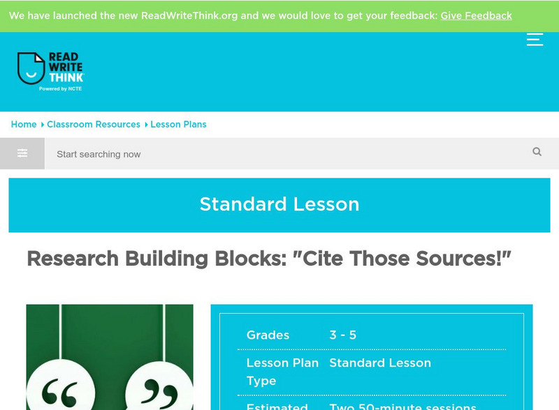 Read Write Think: Research Building Blocks: "Cite Those Sources!"
