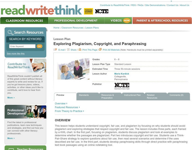 Read Write Think: Exploring Plagiarism, Copyright, and Paraphrasing
