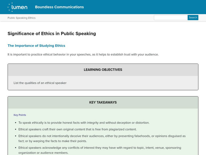 Lumen: Boundless Communications: Significance of Ethics in Public Speaking