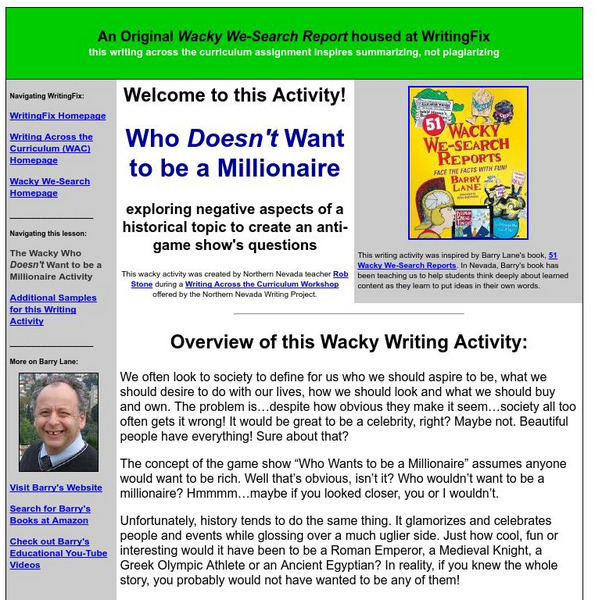 Inspired by Barry Lane's book 51 Wacky We-Search Reports, in this cross-curricular lesson plan students learn how to summarize properly.