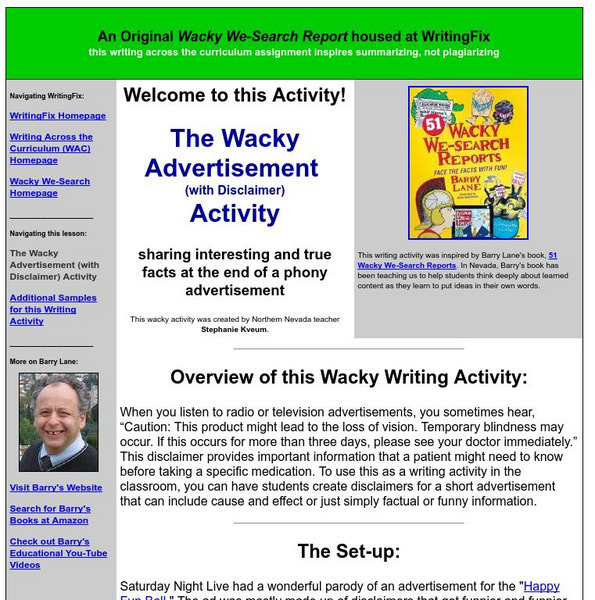 Writing Fix: The Wacky Advertisement (With Disclaimer) Activity