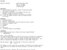 Young scholars calculate baseball statistics and ball field dimensions. In this Pythagorean Theorem, percentages and metric conversion lesson, students are given formulas to find earned run and batting averages for White Sox baseball...
